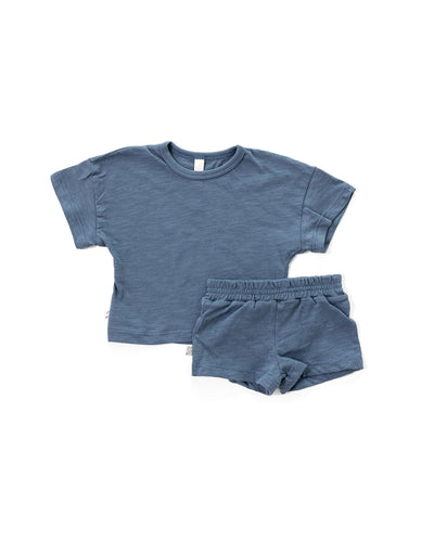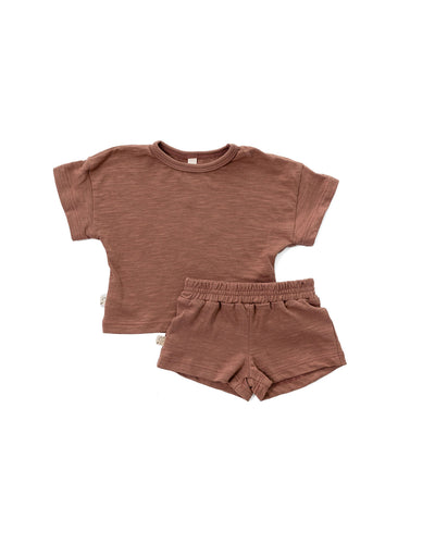 jersey set COs: the new summer staple! With an easy, relaxed fit tee featuring dropped sleeves and matching comfy elastic shorts, this two piece outfit looks cute on literally everyone. Made from our laundered 100% cotton slub jersey Model #1 is wearing a size 2T Model #2 is wearing a size 4T Fabric content: 100% cottonRead More -