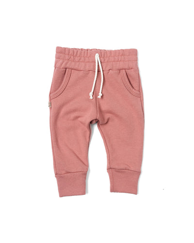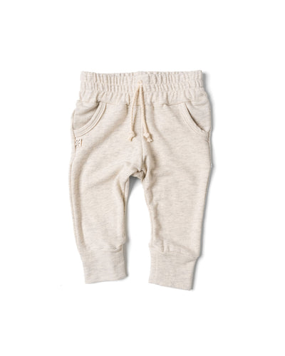Cozy, straight leg pants with a wide elastic waistband, faux drawstring, functional pockets and cuffs at ankle. These gender neutral sweats mix & match so well with hoodies and tops and are perfect for newborns all the way up to 10/11 year olds! Made of our signature soft & cozy cotton french terry which has been milled and pre-washed just for our line. *spandex content in oat colorway makes the fabric lighter weight than our typical french terry Fabric content: 96% cotton, 1% polyester, 3% spandexRead More