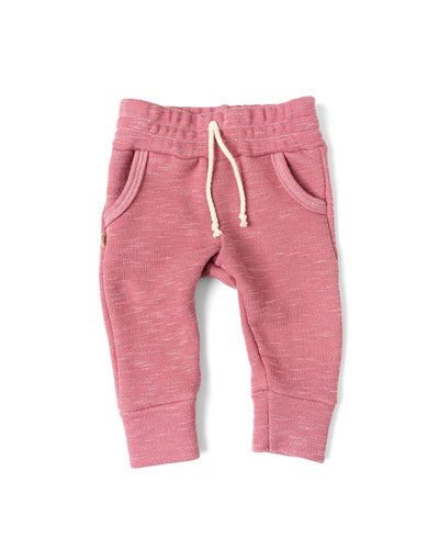 Cozy, straight leg pants with a wide elastic waistband, faux drawstring, functional pockets and cuffs at ankle. These gender neutral sweats mix & match so well with hoodies and tops and are perfect for newborns all the way up to 10/11 year olds! Made of our signature soft french terry which has been milled and pre-washed just for our line. Fabric content: 54% cotton, 37% polyester, 9% rayon Shop for coordinating gift wrap at Parcel Paper!Read More -