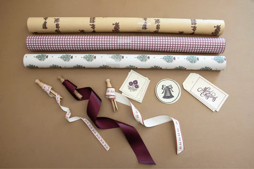 Childhoods X Parcel Paper Collab - PRESHOP items ship end of November/early DecemberOur 'Merry Little Christmas' Collection includes: Premium uncoated paper gift wrap, exclusive hand-painted designs: -'Cranberry Check' wrapping paper roll; 24" wide x 15' long -'O Christmas Tree' wrapping paper roll; 24" wide x 15' long -'Toy Trains' on Kraft wrapping paper roll; 24" wide x 15' long Three rolls of assorted ribbon: -'Rum Raisin' satin ribbon; 1 1/2" width, 50 yard length -'Fa La La La La' cotton ribbon; 1" width, 20 yard length -'Norfolk' cotton ribbon; 1/2" width, 20 yard length Three sets of gift tags: -'Sleigh Bell'; set of 12 -'Merry Christmas'; set of 12 -'Topiary'; set of 12Read More -
