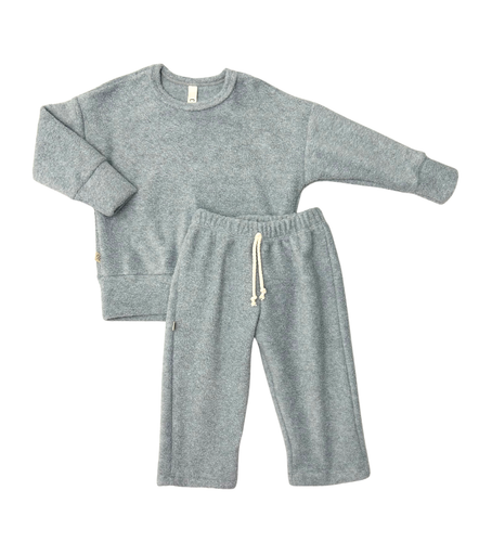 Cozy, straight leg pants with a wide elastic waistband, faux drawstring, functional pockets and cuffs at ankle. These gender neutral sweats mix & match so well with hoodies and tops and are perfect for newborns all the way up to 10/11 year olds! Made of our signature soft & cozy cotton french terry which has been milled and pre-washed just for our line. Fabric content: 100% polyesterRead More -