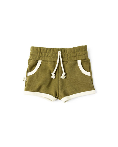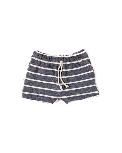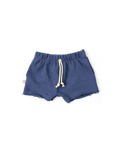 The boy short! For little fellas (and their moms) who like their shorts a bit longer than our 'shorties', these fit the bill! Featuring pockets, a raw hem detail, our comfy elastic waist--easy to pull on--a faux drawstring, and a roomier knee length fit. Made of our signature soft & stretchy french terry which has been milled and pre-washed just for our line. Note: pocket will be waves on natural jersey Fabric content: 100% cottonRead More -