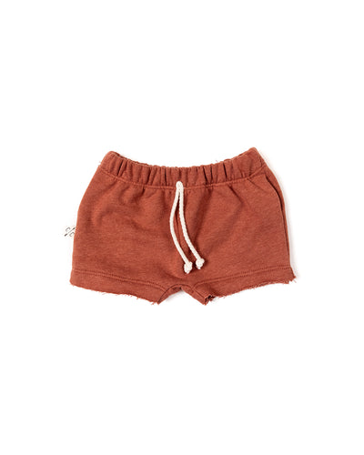 The boy short! For little fellas (and their moms) who like their shorts a bit longer than our 'shorties', these fit the bill! Featuring pockets, a raw hem detail, our comfy elastic waist--easy to pull on--a faux drawstring, and a roomier knee length fit. Made of our signature soft & stretchy french terry which has been milled and pre-washed just for our line. Fabric content: 65% cotton, 38% polyester, 7% rayonRead More -