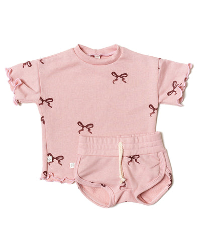 Ruffle Track Set:boxy tee with a relaxed unisex fit, dropped sleeves, and a ruffle edge. Paired with retro-inspired shorts featuring a comfortable elastic waist for the classic track short look. Made from our signature French terry. Fabric Content: 100% cottonRead More