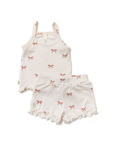 rib camisole set: the new summer staple! A ruffled hem camisole and matching comfy elastic shorts, this two piece outfit looks cute on literally everyone. Fabric content: 94% modal, 6% spandexRead More -