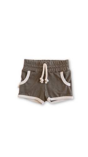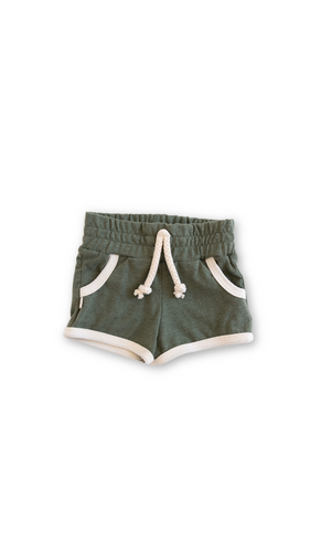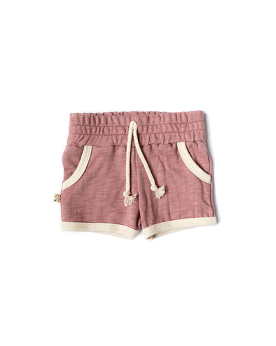 A throwback style for warm weather, the retro short hits longer than our shorties but a bit shorter than boy shorts. Features pockets, contrast binding, a wide waistband and faux drawstring. Fit is comparable to joggers CO COs—just a shortened version! This fabric has been milled and pre-washed just for our line! Fabric content: 100% CottonRead More