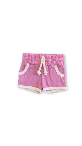 A throwback style for warm weather, the retro short hits longer than our shorties but a bit shorter than boy shorts. Features pockets, contrast binding, a wide waistband and faux drawstring. Fit is comparable to joggers CO COs—just a shortened version! This fabric has been milled and pre-washed just for our line! Fabric content: 100% CottonRead More -