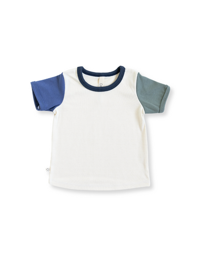 rib knit tee CO - natural ink blue and agave green