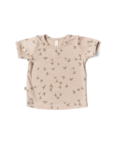 rib knit tee CO - birds on mushroom