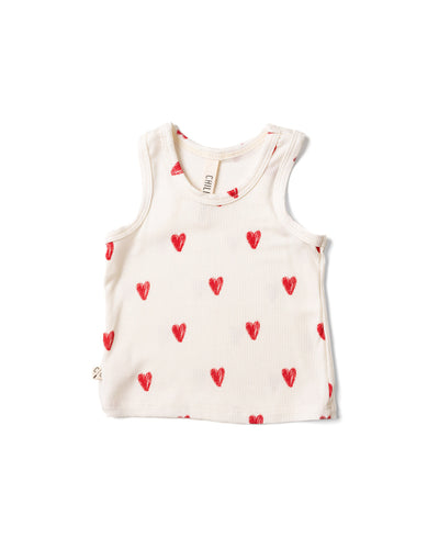 rib knit tank top - red hearts on natural