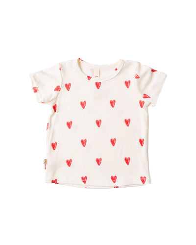 rib knit tee - red hearts on natural