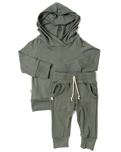Rib Knit Hoodie: Baby/toddler hoodie with raglan sleeves and a band around the hood, cuffs, and bottom in our trademark raglan style with small logo seam tag. made out of soft & cozy rib knit fabric! Rib Knit Jogger: Cozy, straight leg pants with a wide elastic waistband, faux drawstring, functional pockets and cuffs at ankle. These gender neutral sweats mix & match so well with our rib knit hoodies and tops. perfect for newborns all the way up to 8/9 year olds! Made of our signature soft & cozy rib knit fabric. Fabric content: 94% modal, 6% spandexRead More -