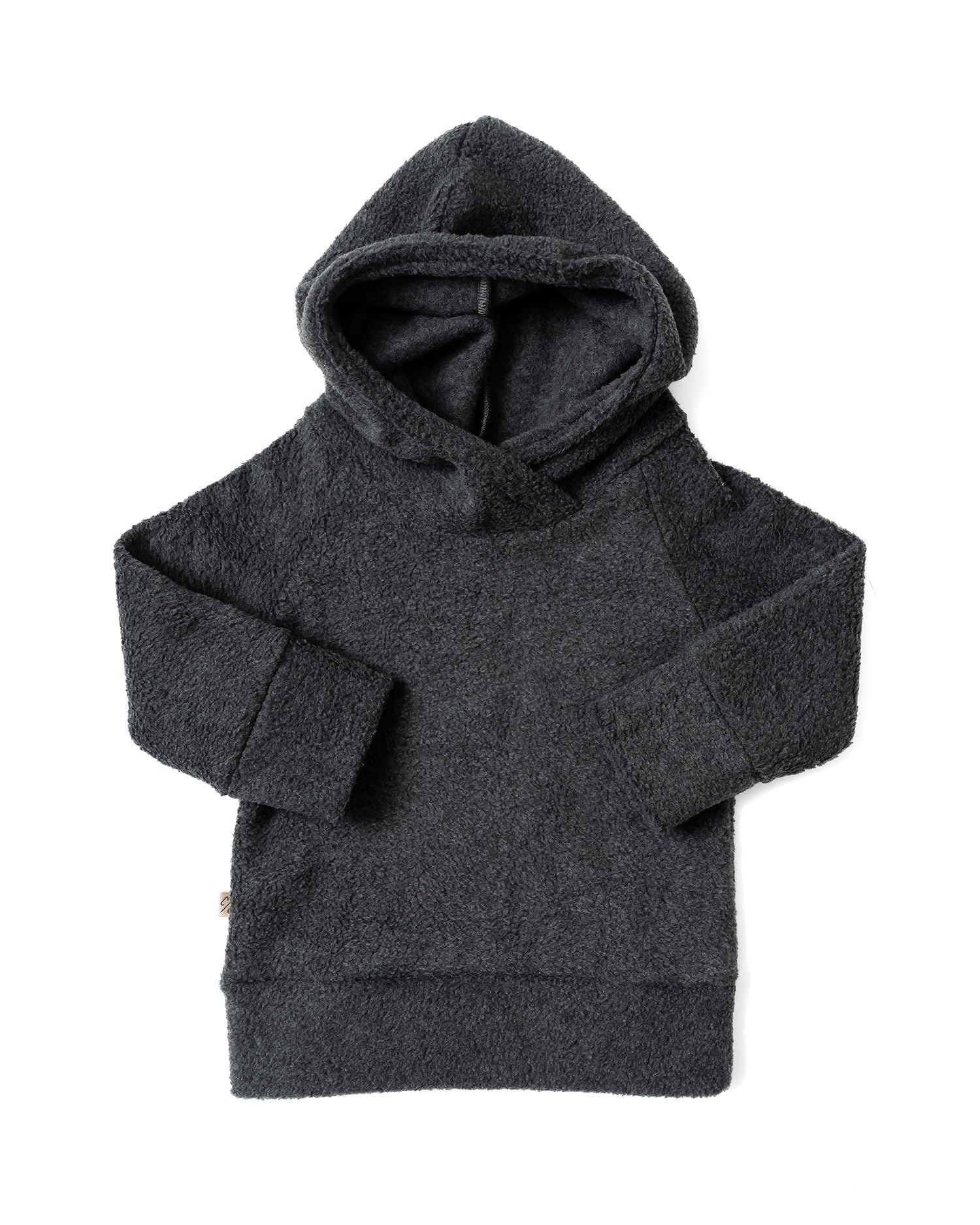 a cozy hoodie with raglan sleeves and a band around the hood, cuffs, and bottom in our trademark raglan style with small logo seam tag.