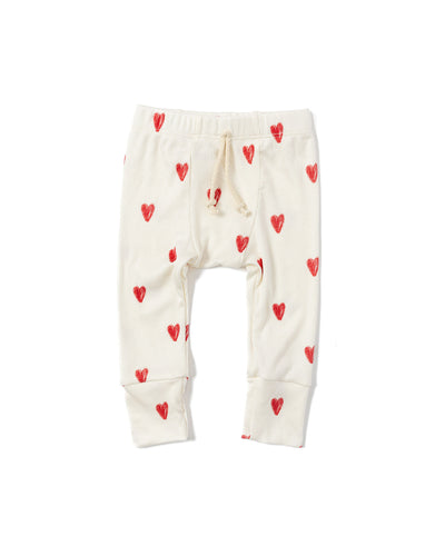 rib knit pant - red hearts on natural rib knit pant - red hearts on natural