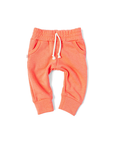 Cozy, straight leg pants with an elastic waist, faux drawstring, cuffs at ankle and a gusset added for a perfect fit.  These gender neutral sweats mix & match so well with hoodies and tops and are perfect for newborns all the way up to 9 year olds! Moms & kids both love these best sellers.  Made of our signature soft & cozy french terry which has been milled and pre-washed just for our line.  Fabric content: 100% cotton