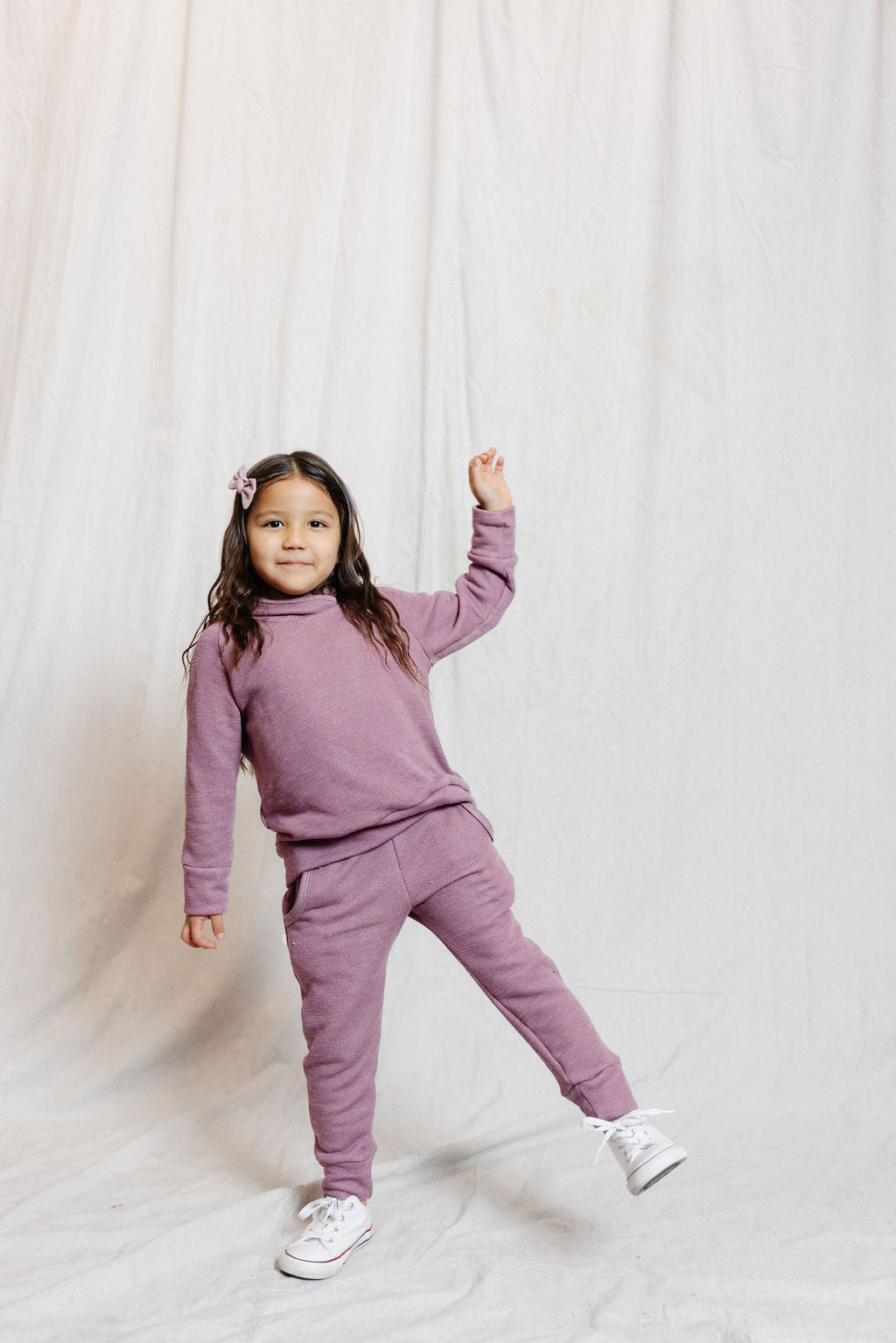 Cozy, straight leg pants with a wide elastic waistband, faux drawstring, functional pockets and cuffs at ankle. These gender neutral sweats mix & match so well with hoodies and tops and are perfect for newborns all the way up to 10/11 year olds!  Made of our signature soft french terry which has been milled and pre-washed just for our line.