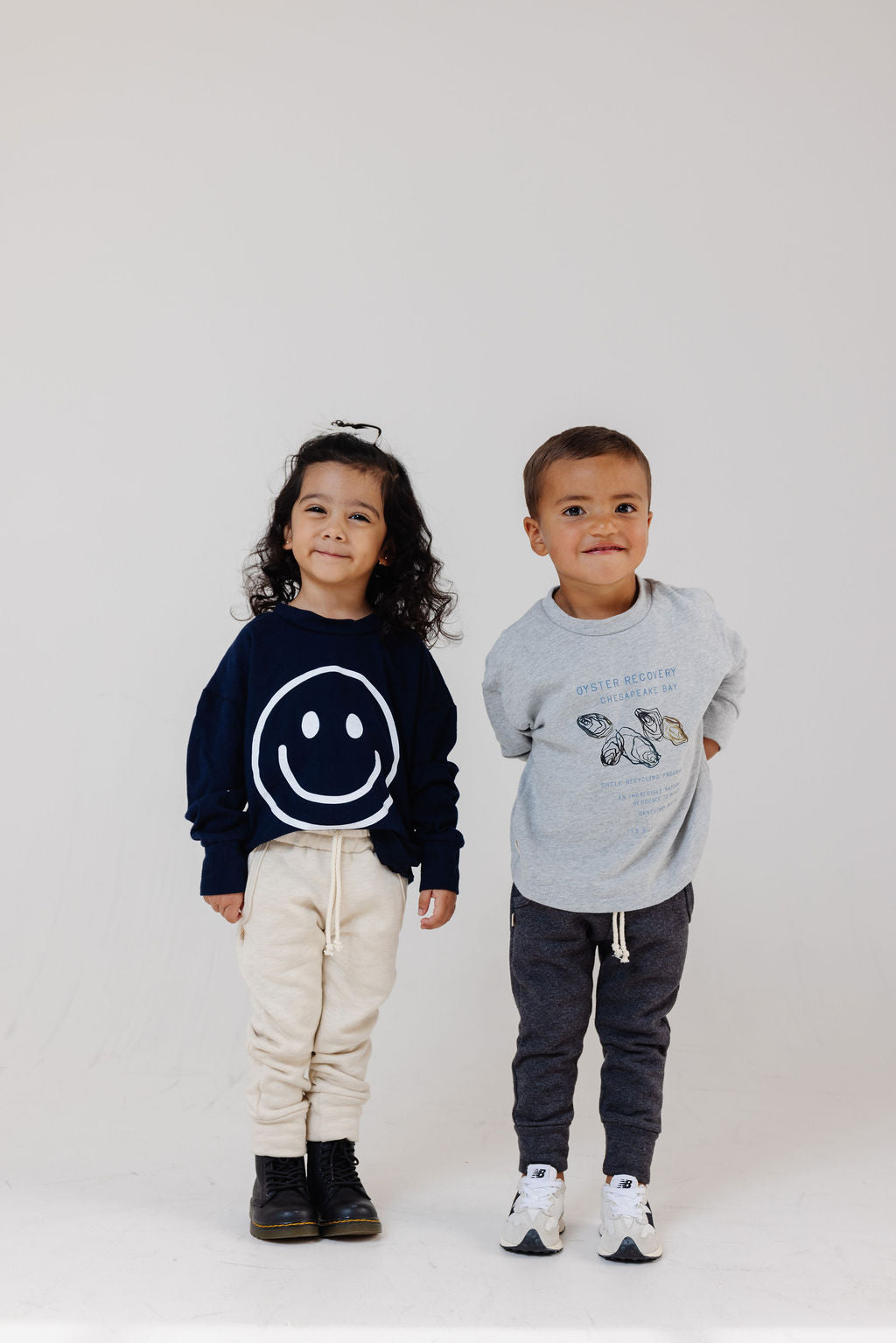 Cozy, straight leg pants with a wide elastic waistband, faux drawstring, functional pockets and cuffs at ankle. These gender neutral sweats mix & match so well with hoodies and tops and are perfect for newborns all the way up to 10/11 year olds!  Made of our signature soft fleece terry which has been milled and pre-washed just for our line.