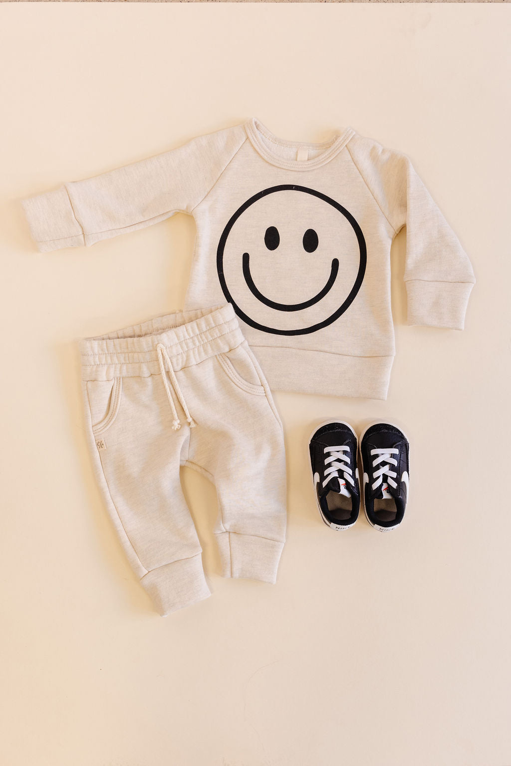 A sweet little crew neck sweatshirt with raglan sleeves and a "V" detail at neck. Made of our signature soft & cozy french terry which has been milled and pre-washed just for our line. So cute & versatile on tiny babies & big