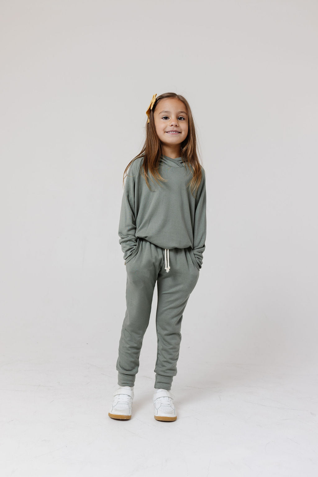 Rib Knit Jogger: Cozy, straight leg pants with a wide elastic waistband, faux drawstring, functional pockets and cuffs at ankle. These gender neutral sweats mix & match so well with our rib knit hoodies and tops. perfect for newborns all the way up to 8/9 year olds!  Made of our signature soft & cozy rib knit fabric.