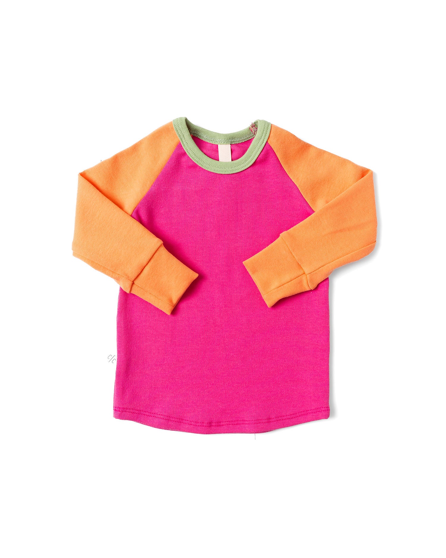 rib knit long sleeve tee - punch creamsicle and kiwi